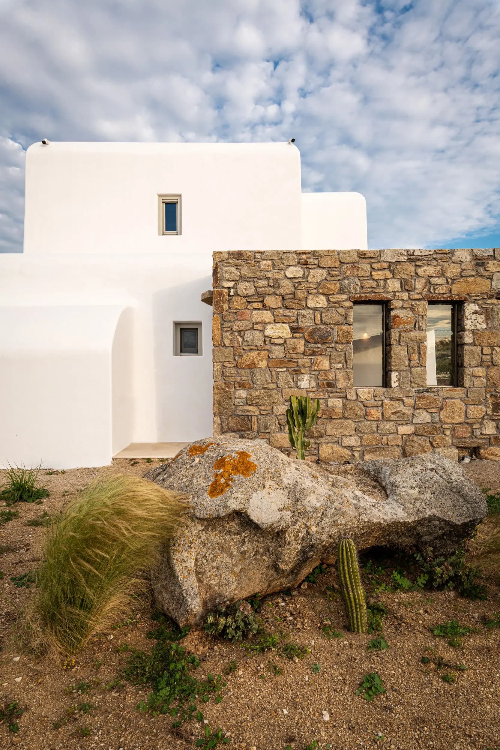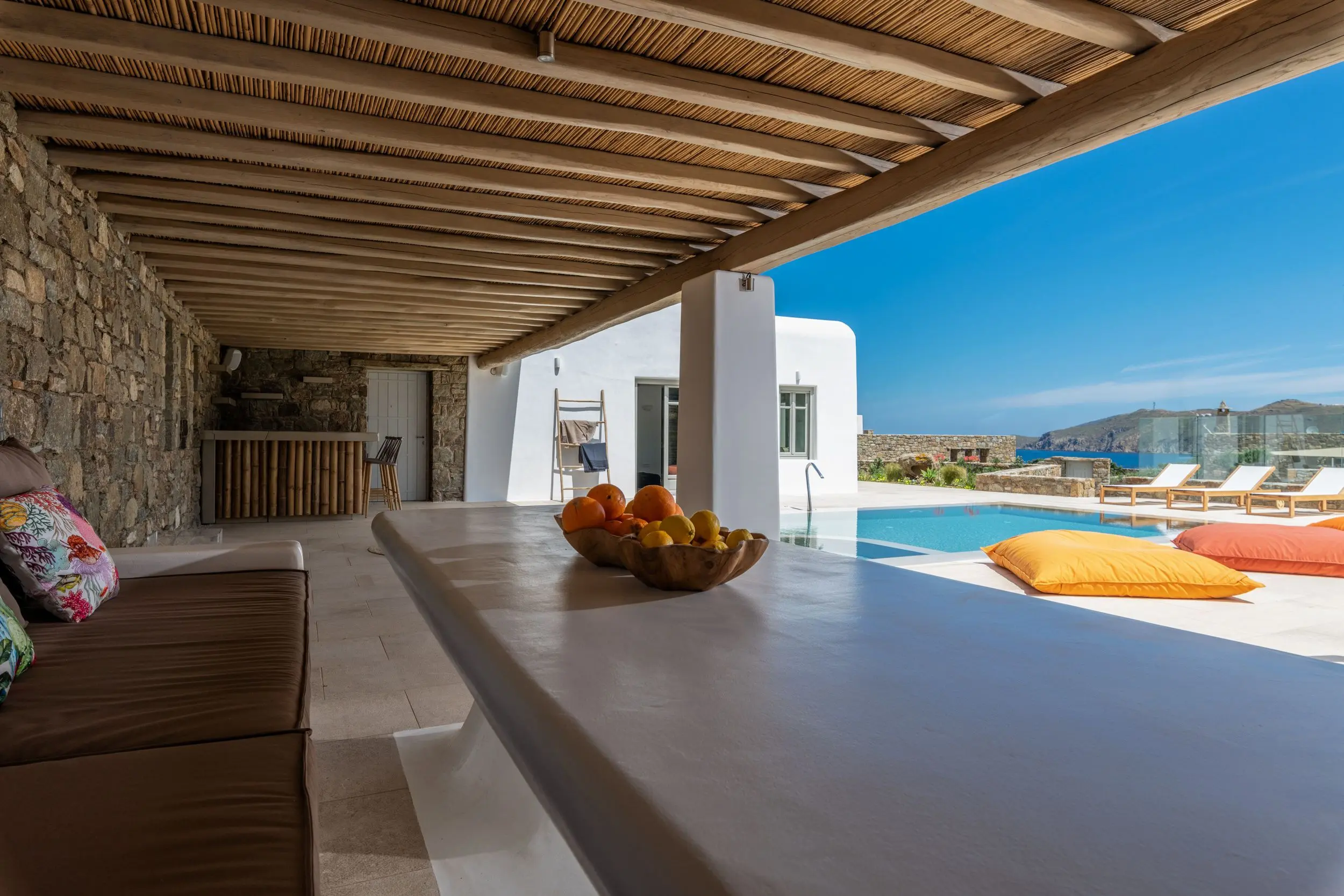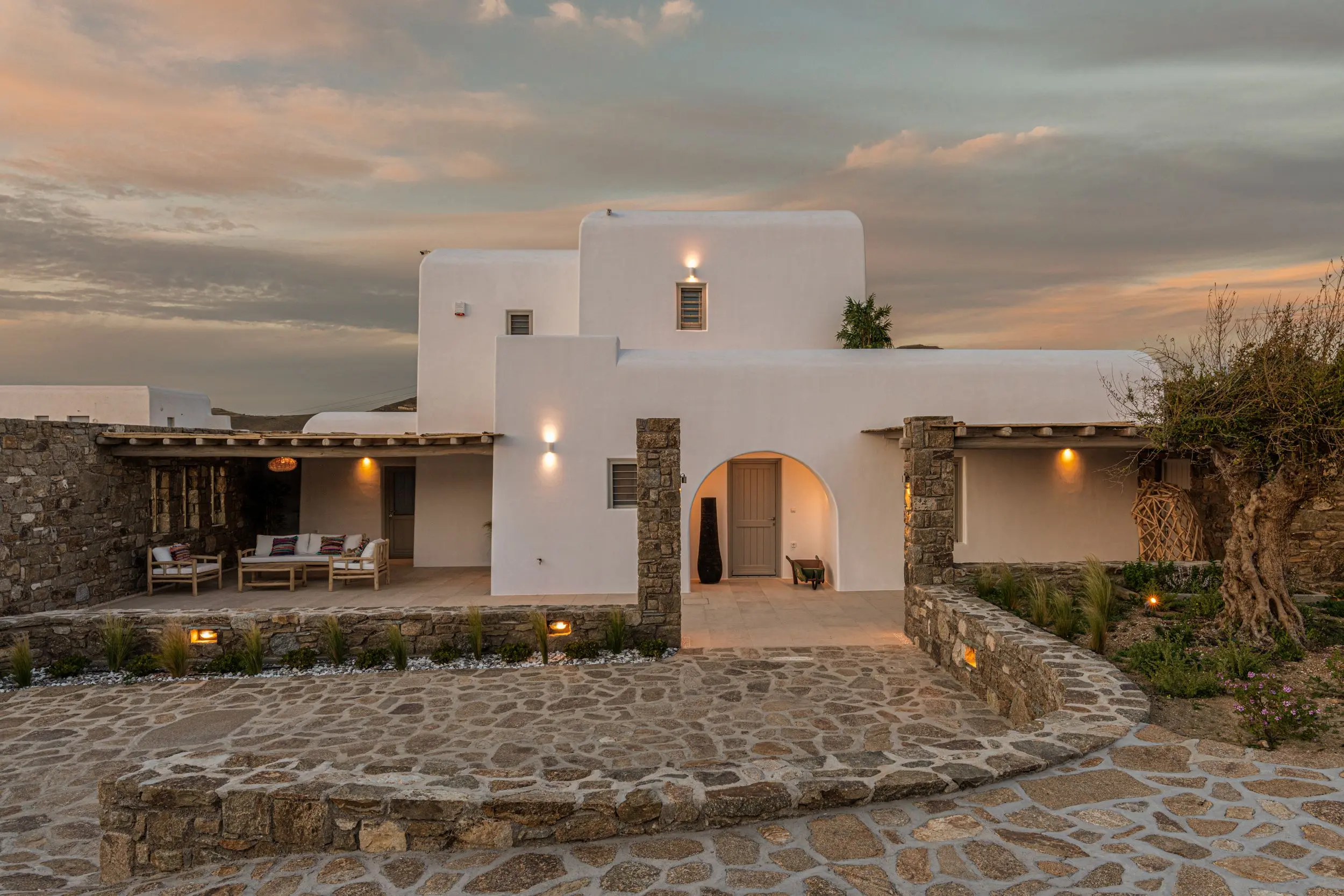The name of the villa is inspired from the Greek word 'Aloni' which means 'threshing floor'. Mykonian threshing floors were flat and paved round shaped surfaces enclosed by stones, always located to a place exposed to the wind. Local farmers used the help of donkeys to thresh the grain harvest and the wind would do the rest of the work by winnowing it. You will find the perfectly preserved aloni at the outside area of the villa which is now transformed into a unique outdoor cinema. EOT Number: 1102676