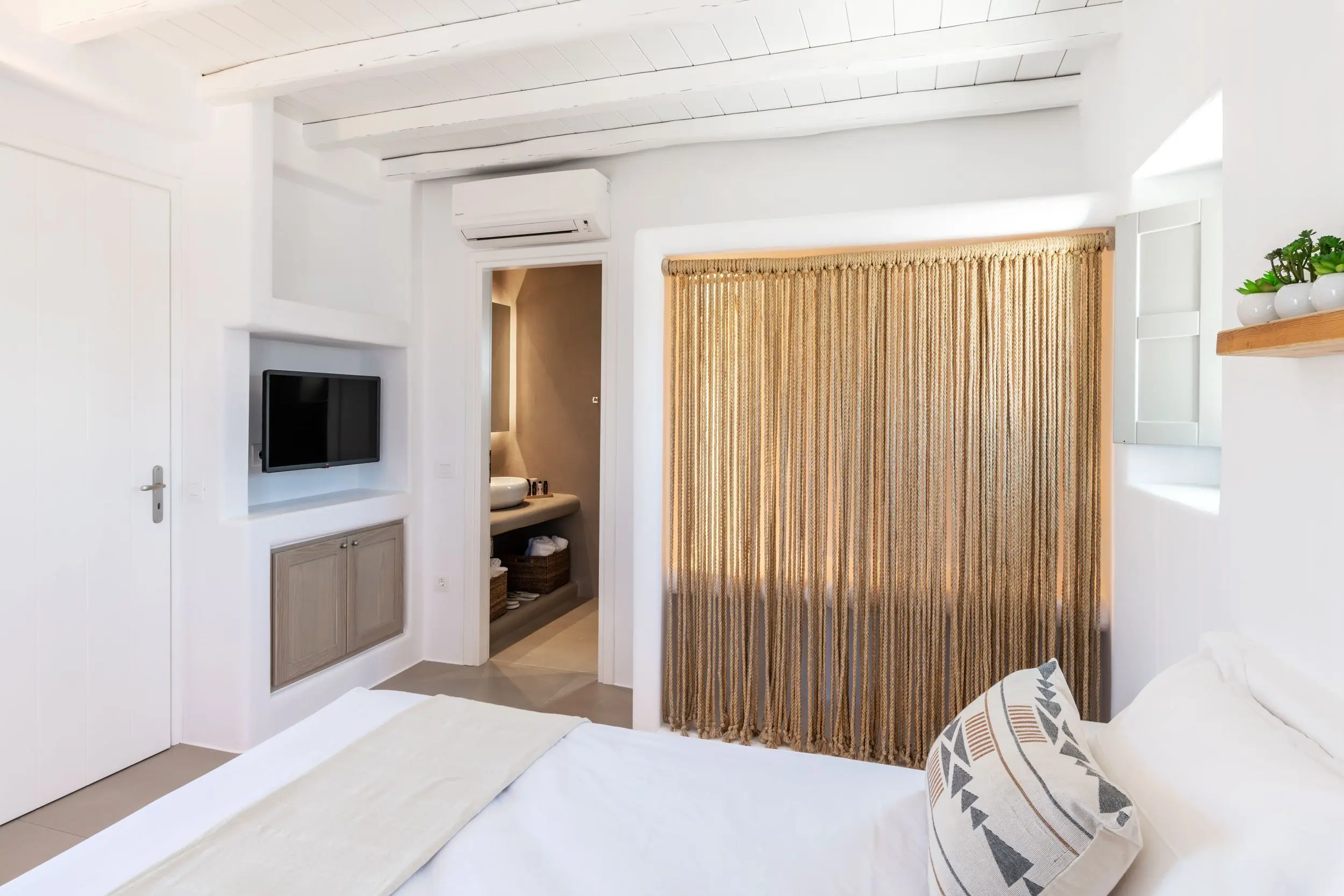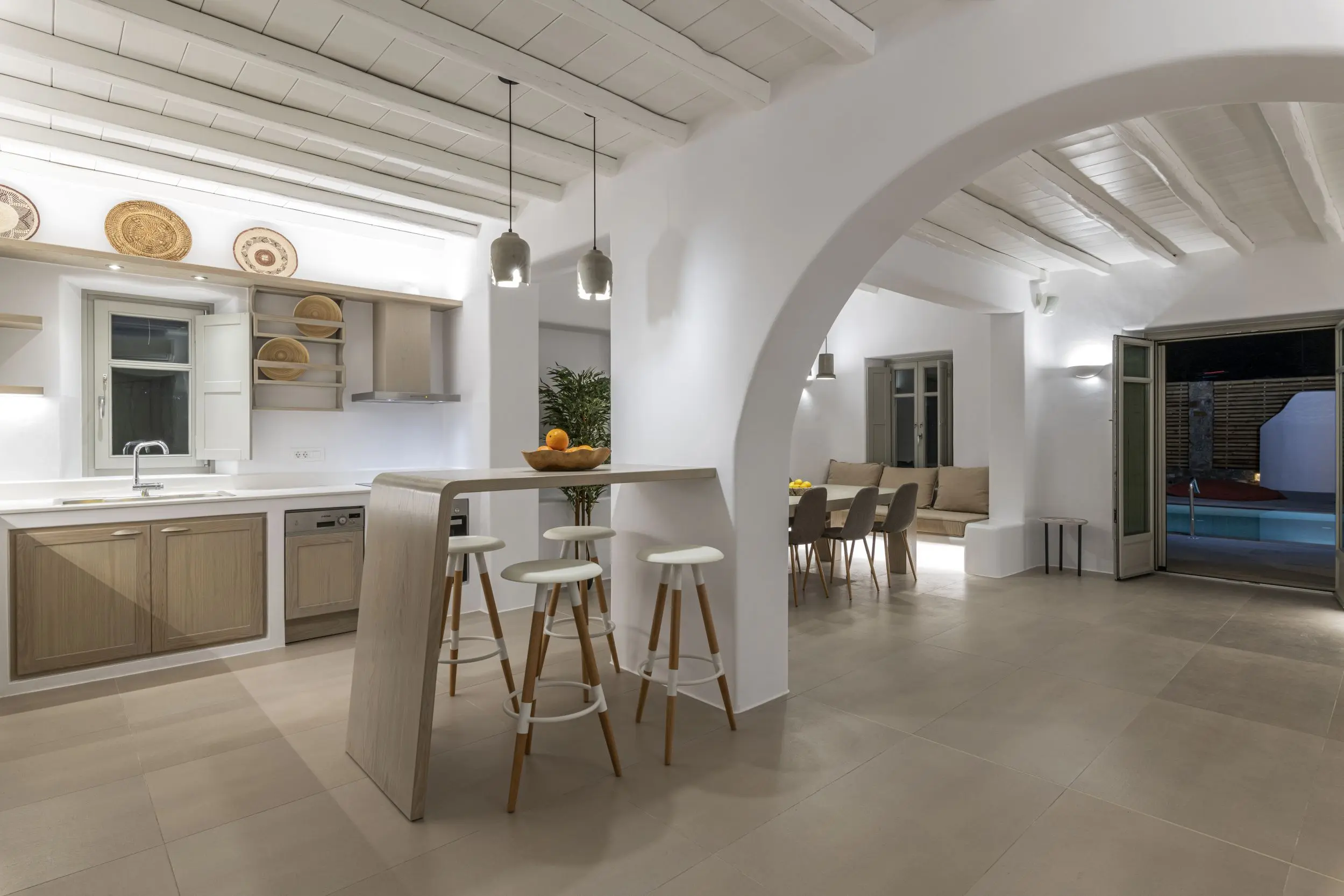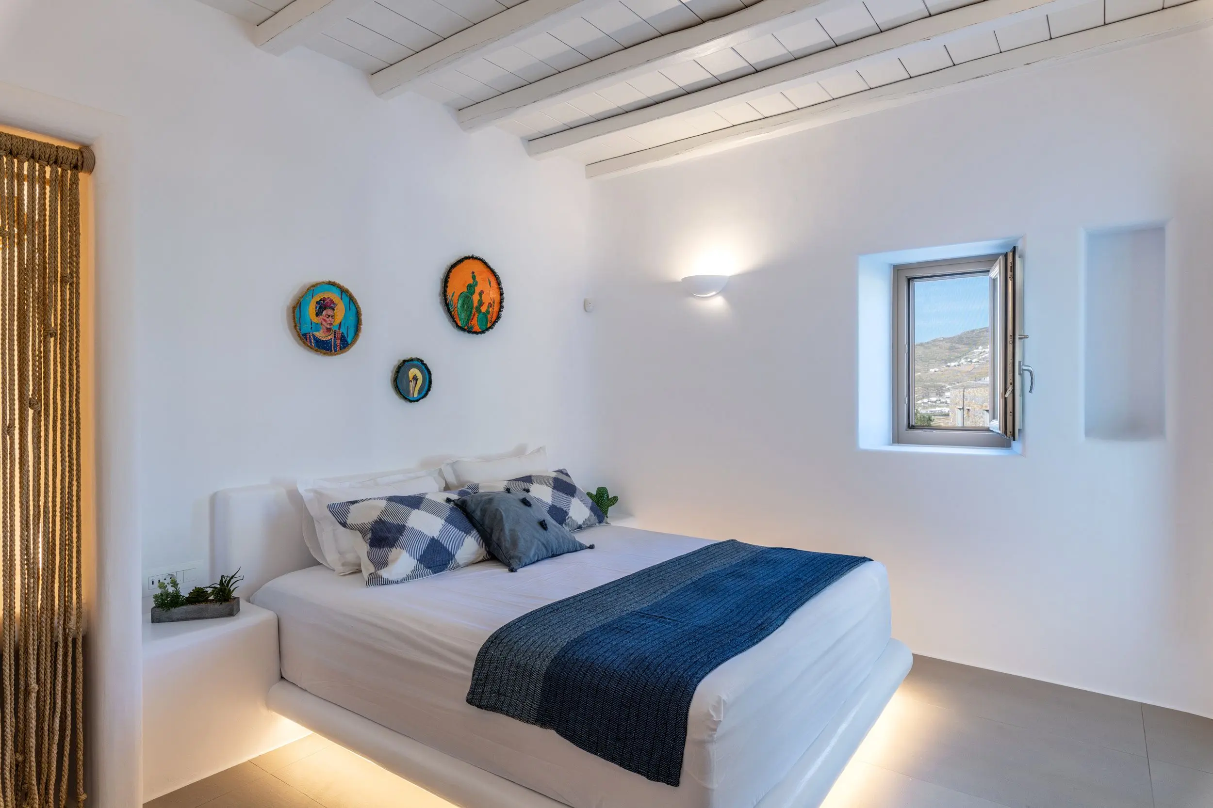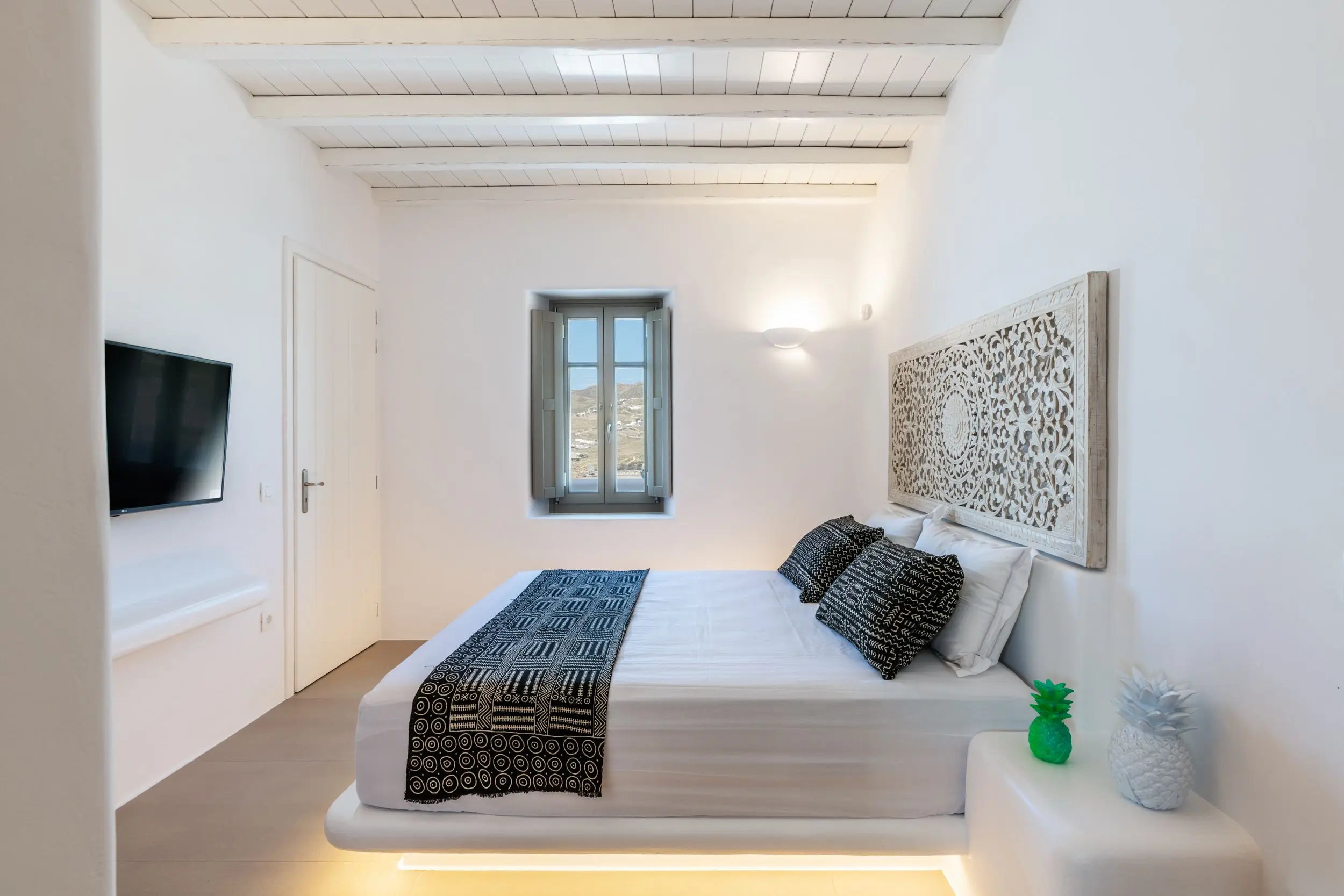The name of the villa is inspired from the Greek word 'Aloni' which means 'threshing floor'. Mykonian threshing floors were flat and paved round shaped surfaces enclosed by stones, always located to a place exposed to the wind. Local farmers used the help of donkeys to thresh the grain harvest and the wind would do the rest of the work by winnowing it. You will find the perfectly preserved aloni at the outside area of the villa which is now transformed into a unique outdoor cinema. EOT Number: 1102676
