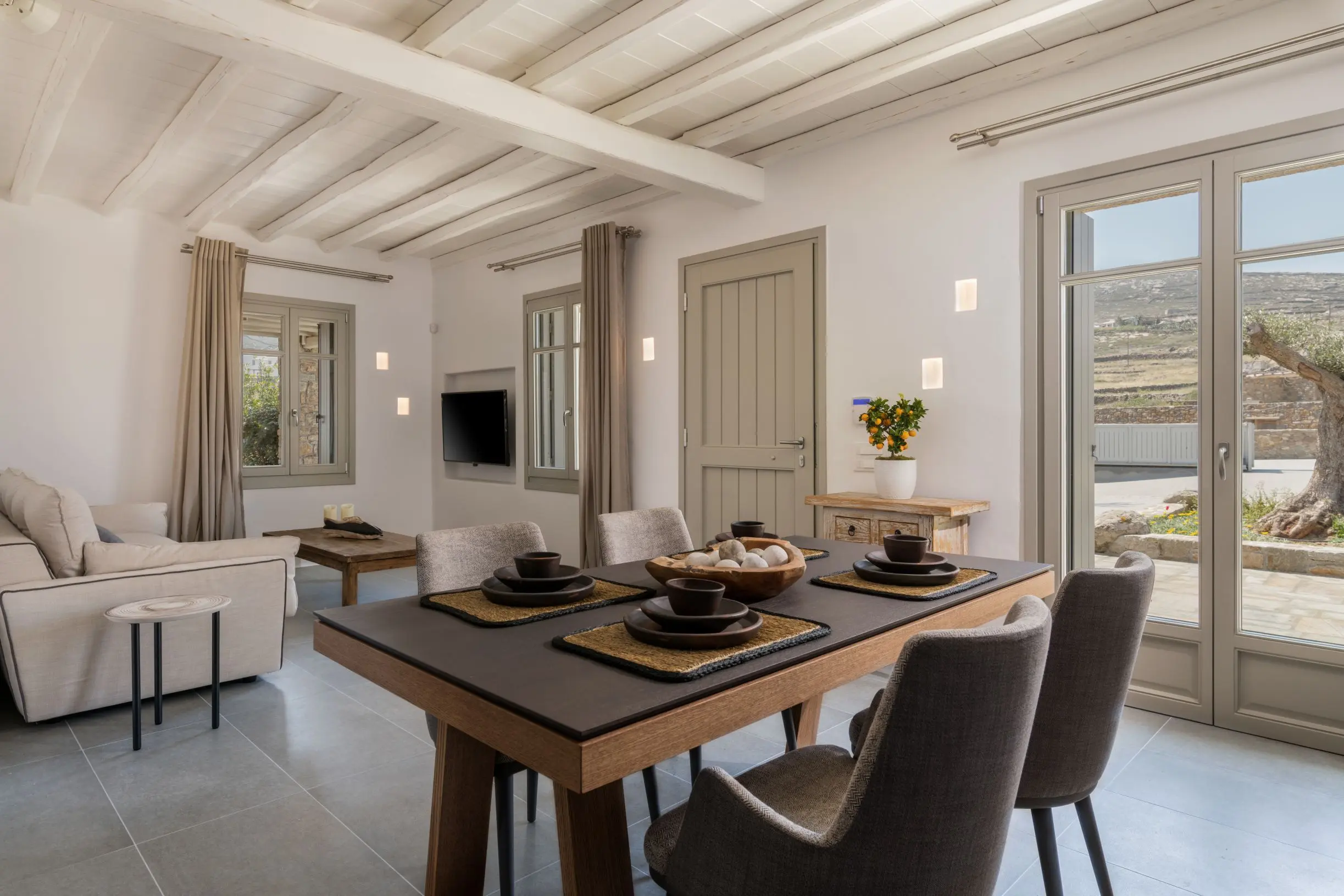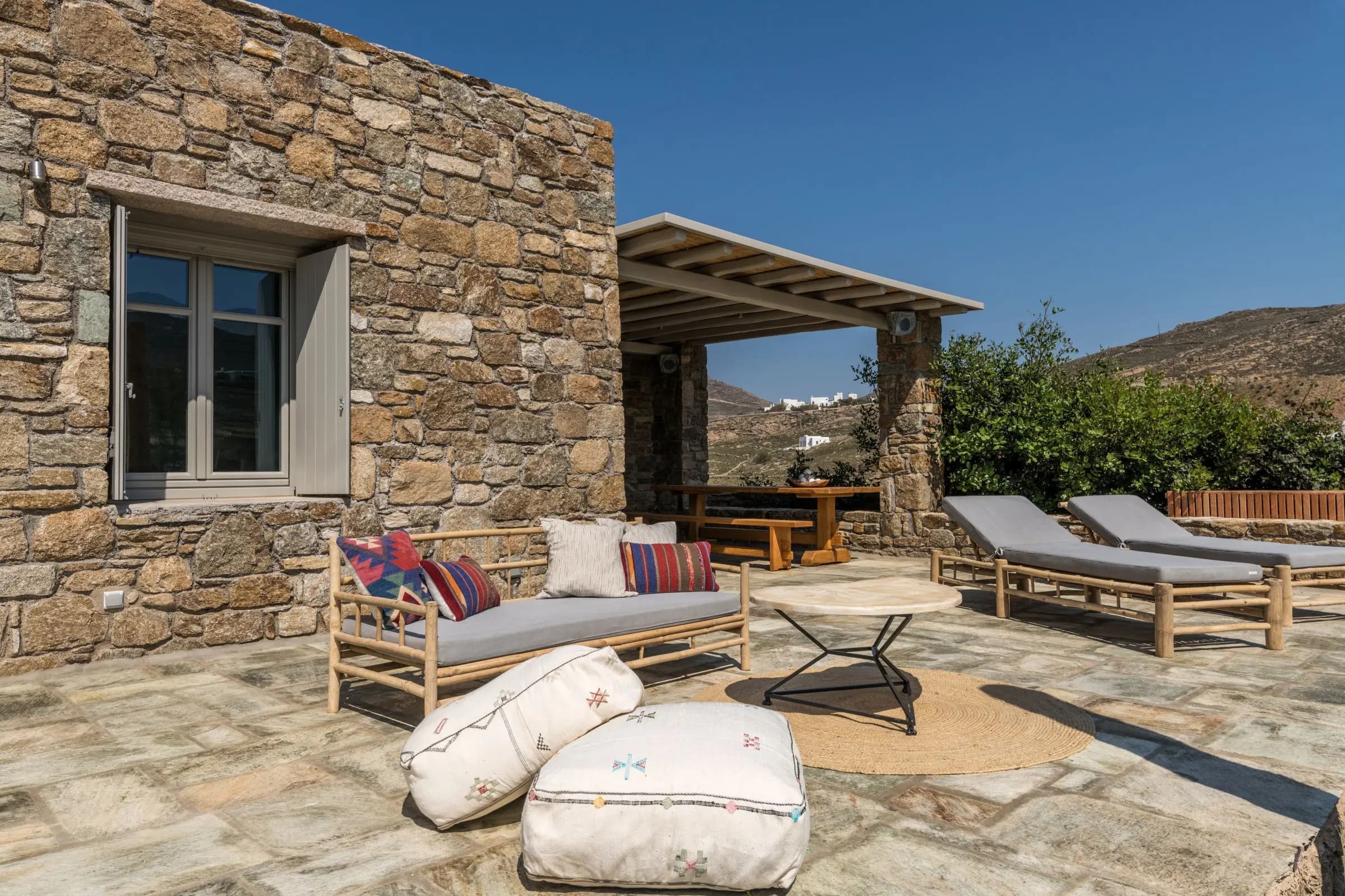 Villa Kele is named after the Greek word 'keli', this word was commonly used around Greek islands to name the small shelter houses made of stone where farmers could protect their animals or even live there with them. Plenty of those were built by Mykonian farmers back in the old days. Villa Kele used to be one of those and is a living example of how our heritage continues to live through us. Some parts of the old 'Kele' are still preserved. EOT Number: 1102684