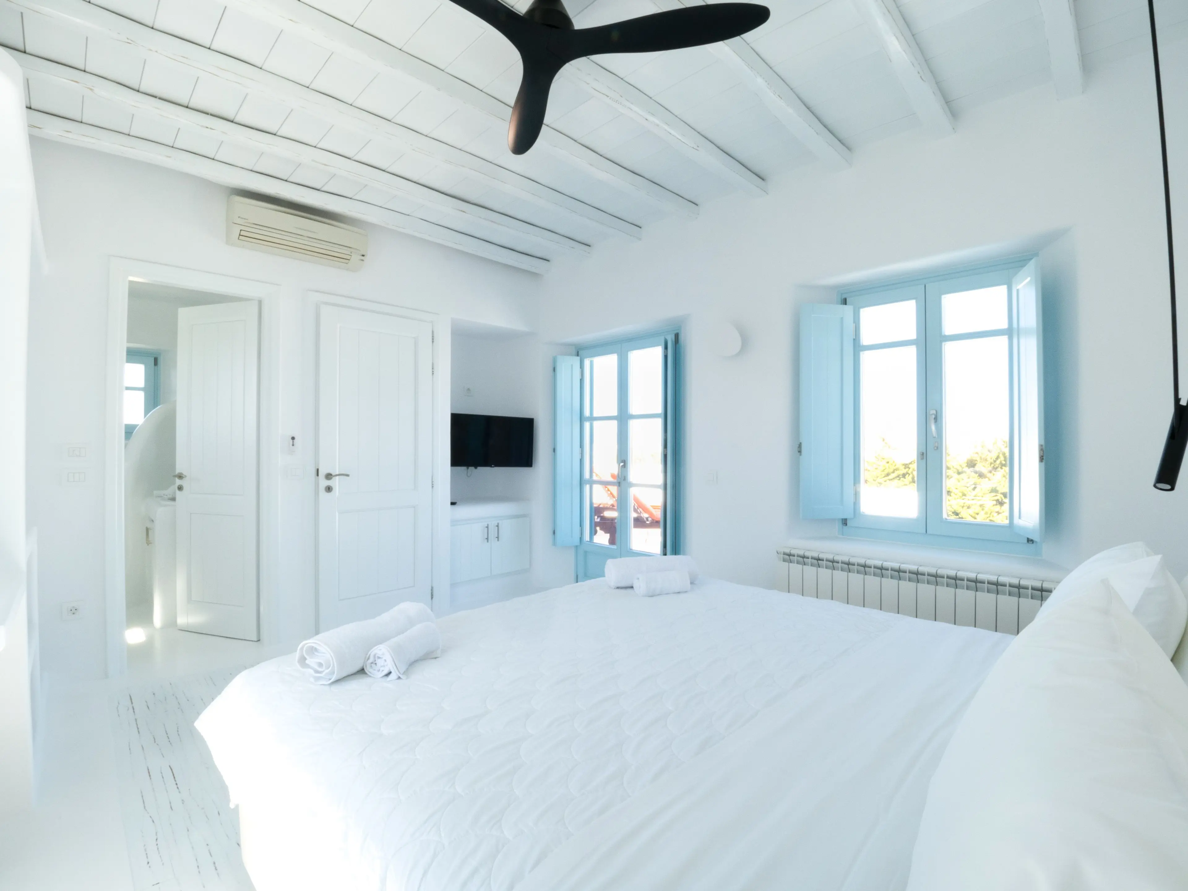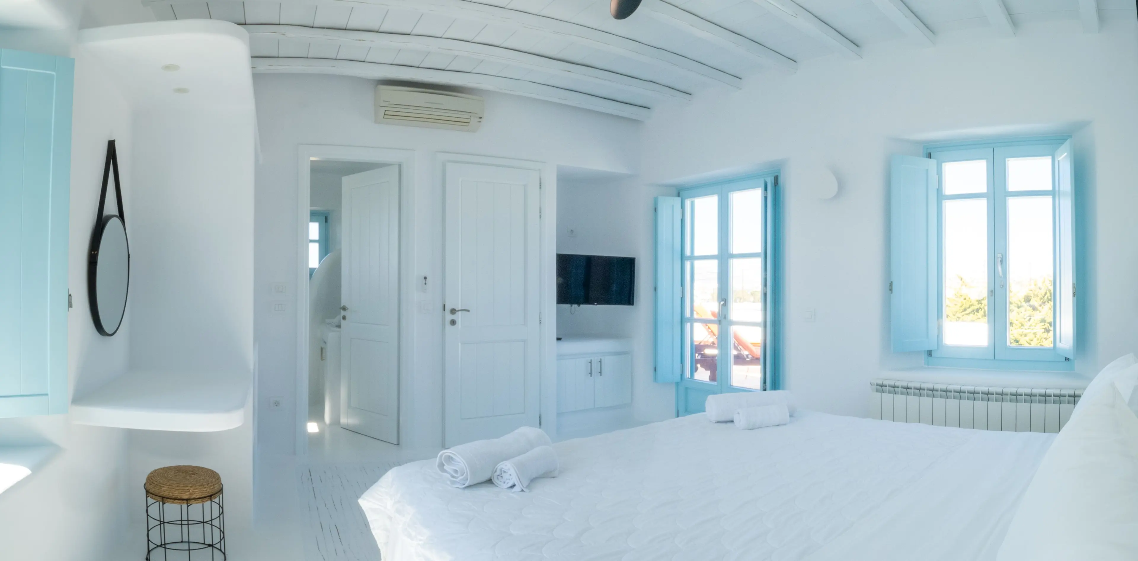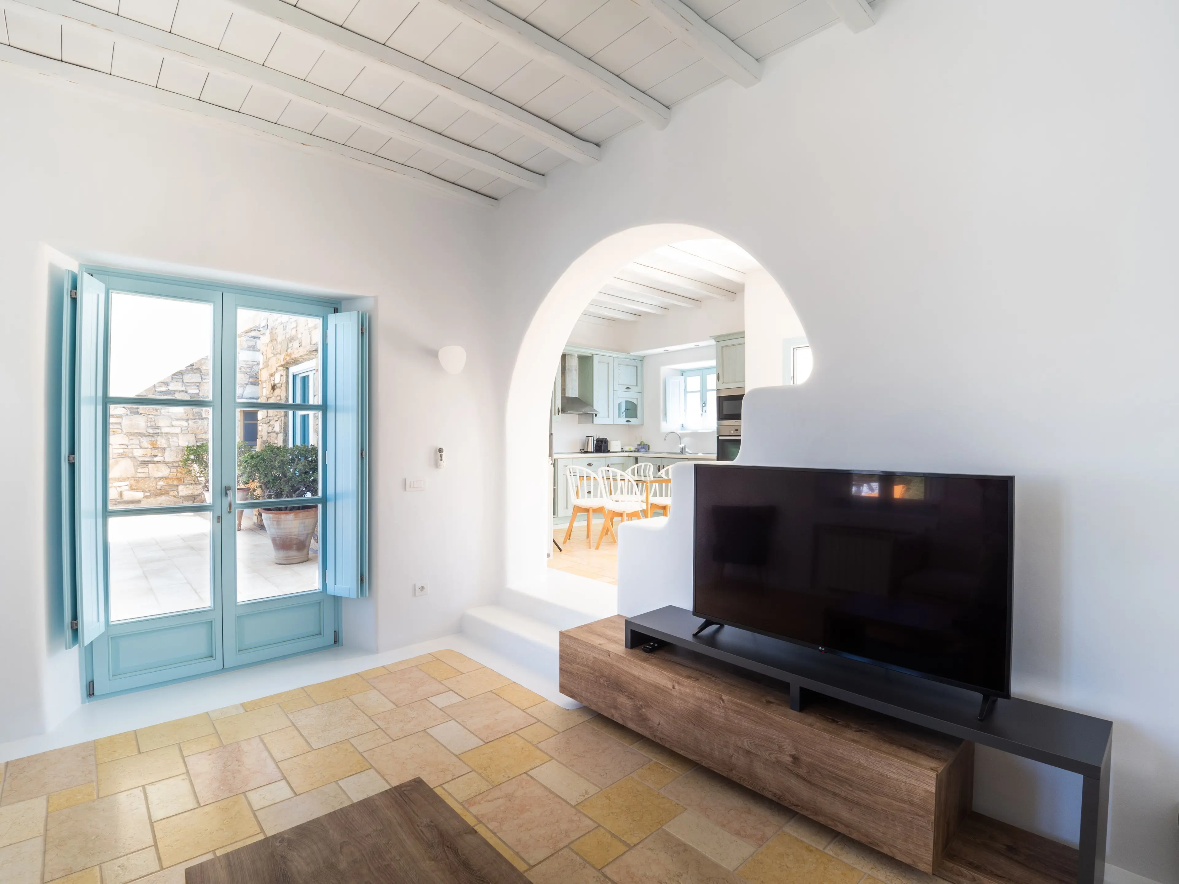 'Uranos' (The god of the sky) was the firstborn son and husband of 'Gaia'. He is the first male that came to life. Gaia and Uranos were the beginning of creation. Villa Uranos is a heavenly house where white & blue colors take the lead. Traditional architecture meeting comfort. EOT Number: 1235911